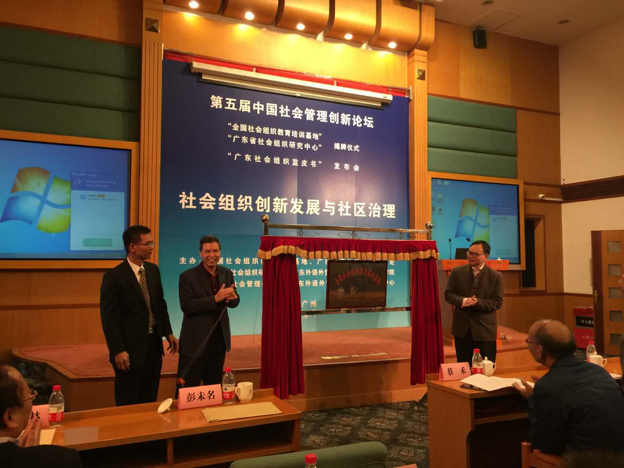 本次论坛主题为“社会组织创新发展与社会治理”,由广外政治与公共管理学院院长彭未名主持,会上进行了全国社会组织教育培训基地揭牌仪式、广东省社会组织研究中心挂牌仪式,并发布广东省首部关于社会组织的蓝皮书《广东社会组织发展报告(2015)》。