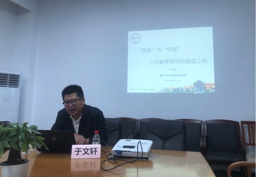 2021年4月16日晚上7时,由广东省社会组织研究中心与公管学院联合举办的学术讲座“良政善治讲堂”第4讲在南校区教学楼D506会议室举行。本次讲座特邀厦门大学公共事务学院、公共政策研究院博导于文轩教授就“‘西医与中医’:公共管理学研究路径之辩”做主题讲座。公管学院党委书记高云坚、副院长涂斌、行政管理系主任费久浩、部分社会管理硕士生导师、公共管理大类老师以及50余名相关专业的硕士研究生和本科生参加本次讲座,讲座由涂斌副院长主持。