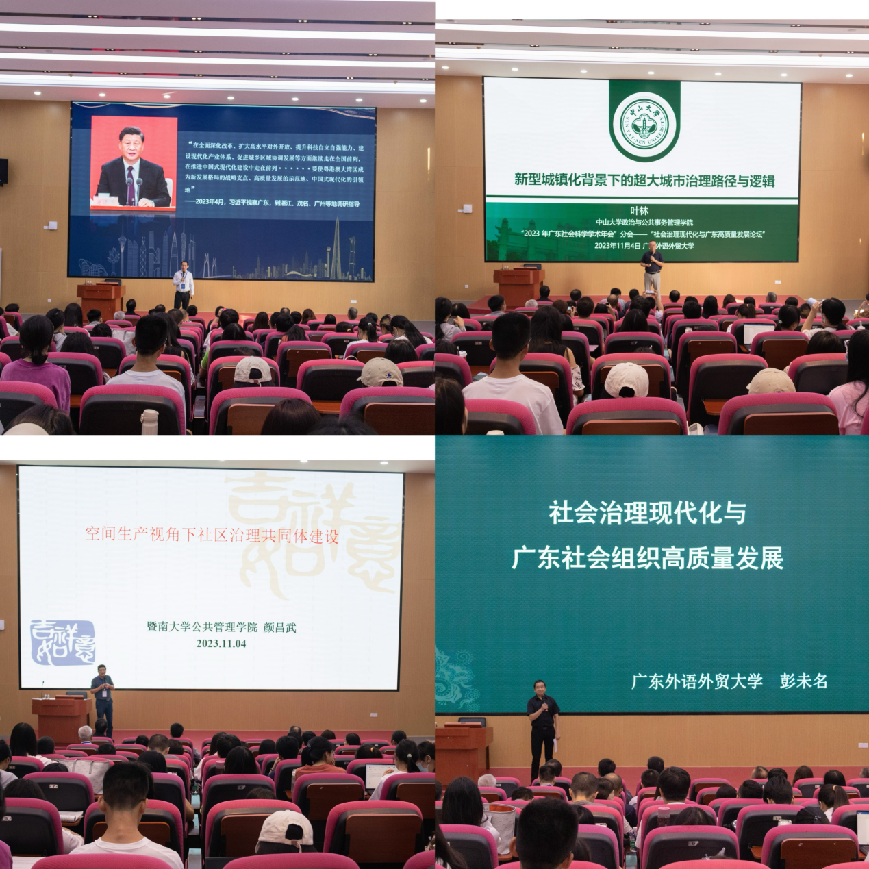 11月4日,由广东省社会科学界联合会主办,社会与公共管理学院 广东社会组织管理学院、广东省社会组织研究中心和广东省社会管理研究会联合承办的2023广东社会科学学术年会之“社会治理现代化与广东高质量发展”分会在我校大学城校区举办。来自中山大学、华南理工大学、厦门大学、暨南大学、华南农业大学、汕头大学、广东省团校(广东青年政治学院)、中山市委党校、中山市司法局等省内外高校、党校、政府部门、社会组织和企事业单位200余名专家学者与会。