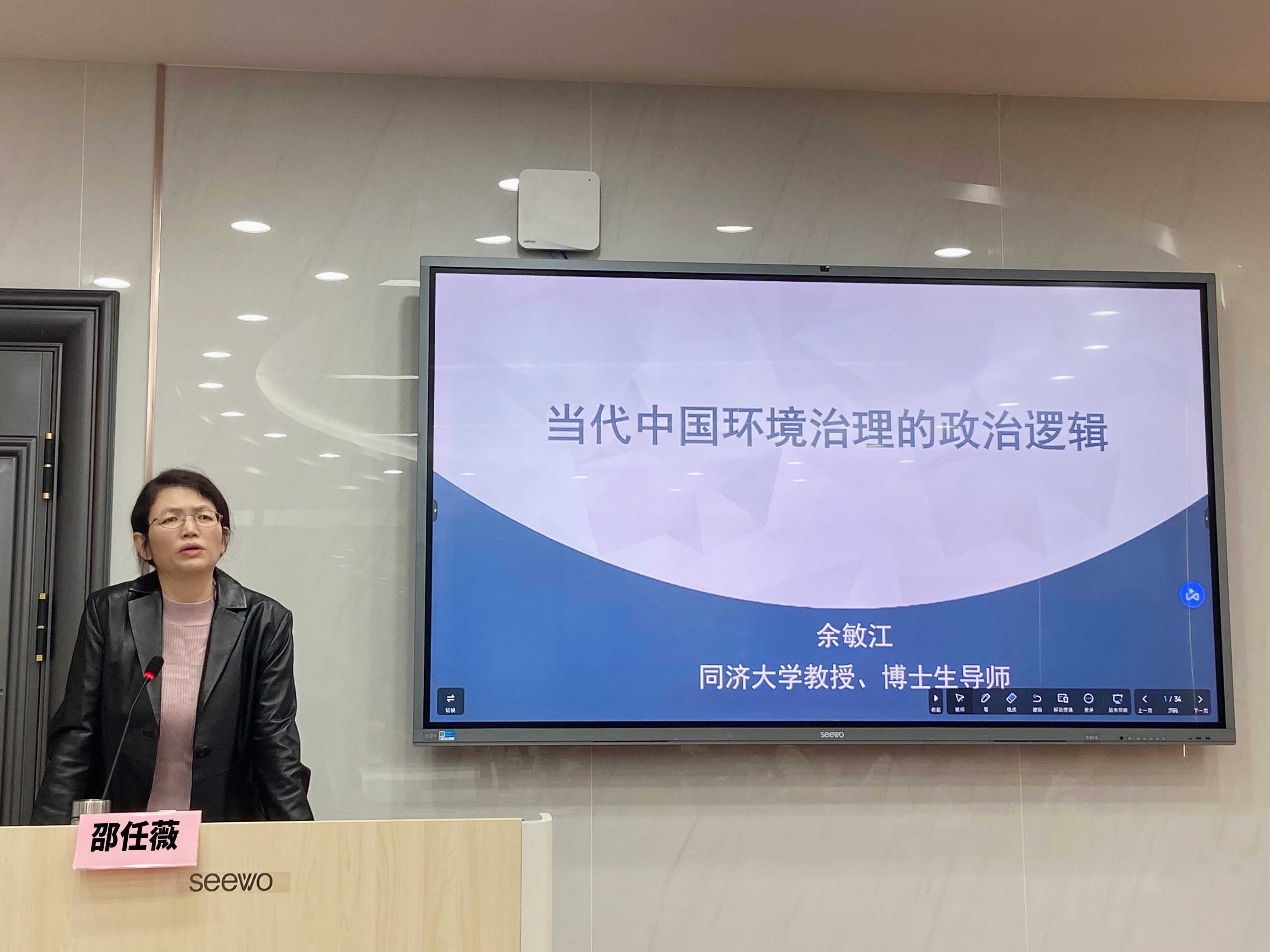余敏江教授的报告对当代中国环境治理的政治逻辑进行了全面、深刻且精彩的论述,引导大家从环境政治学视角深入思考当代中国环境治理背后的政治逻辑,视角新、理论新、方法新,高屋建瓴、观点独到、纵深多元,紧贴学术前沿,内涵丰富、逻辑缜密,具有很强的思想性、理论性和指导性,给师生们深入浅出、耳目一新的深深启迪,有利于开拓学术视野、激发学术热情、提升学术素养。