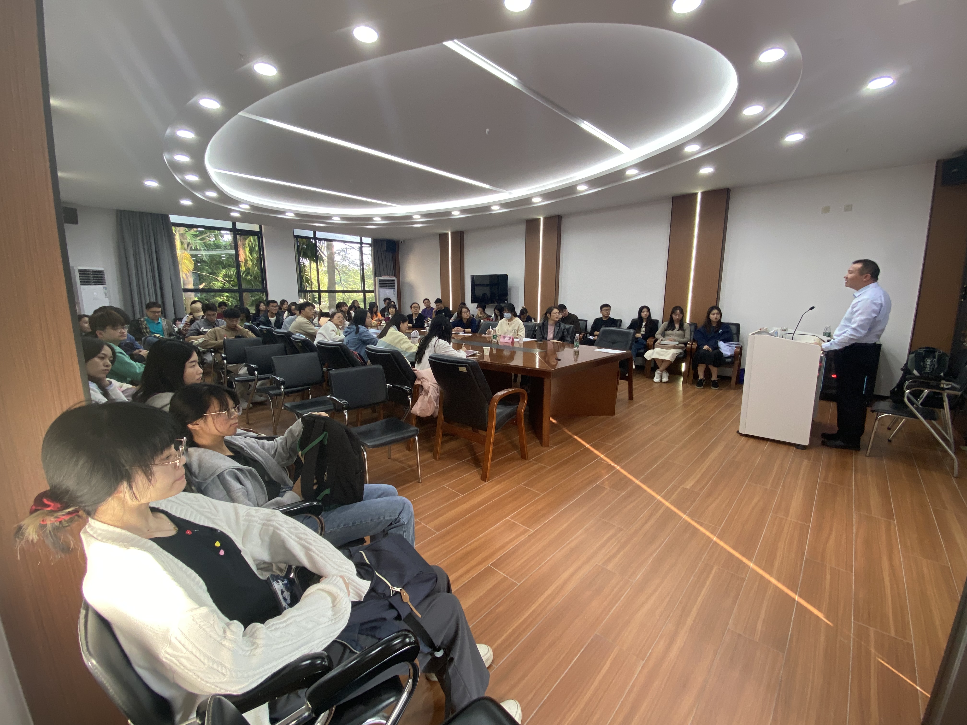 在讲解过程中,他展示了从党的十八大到党的二十大生态文明关键词的词频分析,让同学们直观地感受到了我国对环境问题关注程度的快速上升。还结合我国天、水、山的生态保护和河(湖)林滩的环境治理,引用垃圾分类、雾霾治理和社会组织参与环境治理的相关热点案例,结合自己多年的基层工作经验,对我国如何实现“人与自然和谐共生的现代化”、全面推进美丽中国建设这一问题进行了专业化、情景化、系统化的学理阐释。