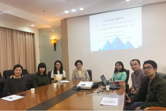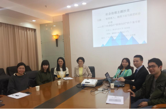 12月19日下午,广东外语外贸大学社会与公共管理学院和广东省社会组织研究中心联合主办的第三期社会治理主题学术沙龙在南校区校办公楼317会议室顺利举办。本次沙龙由中山大学费久浩博士、南京农业大学张国磊博士主讲,广东省社会组织研究中心副主任邵任薇教授主持。出席沙龙的嘉宾有社会与公共管理学院高云坚书记、社会与公共管理学院副院长涂斌教授、社会与公共管理学院副院长张信勇副教授、社会与公共管理学院施可明主任、杨美芬博士、林海彬博士、吴月博士,广东省社会组织研究中心专职研究员贾晶晶博士等专家学者以及学院学生。
