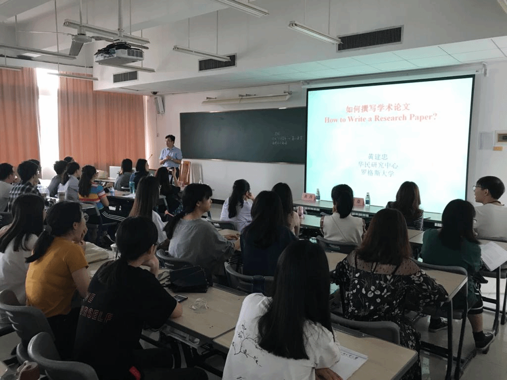 3月28日下午,社会与公共管理学院在南校区教学楼D410举办主题为“如何撰写学术论文”的论坛。本次讲座由美国罗格斯大学华民研究中心主任、社会工作学院教授黄建忠教授主讲,社会与公共管理学院副院长涂斌教授主持。出席讲座的有广东社会组织管理学院副院长陈胜副教授、社会与公共管理学院吴月副教授、刘亚博士、杨美芬博士、房瑞佳老师、白志华老师、广东省社会组织研究中心专职研究员贾晶晶博士以及多个学院老师学生。